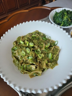 밀가루 안먹기에 현미 칼국수면으로 바질 파스타 요리했습...